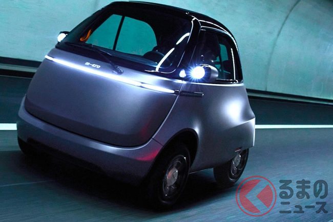 全長2.4mの「タマゴ型」コンパクトカー登場! ガバっと開く「斬新ドア」採用に注目あつまる! “軽自動車”より小さく扱いやすい「マイクロリーノ」とは