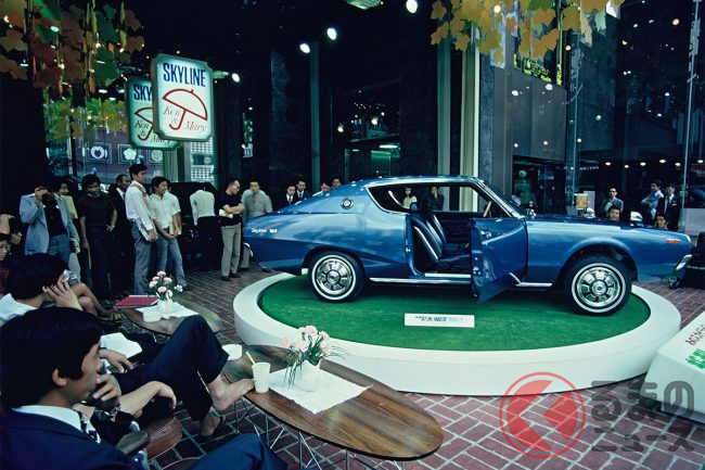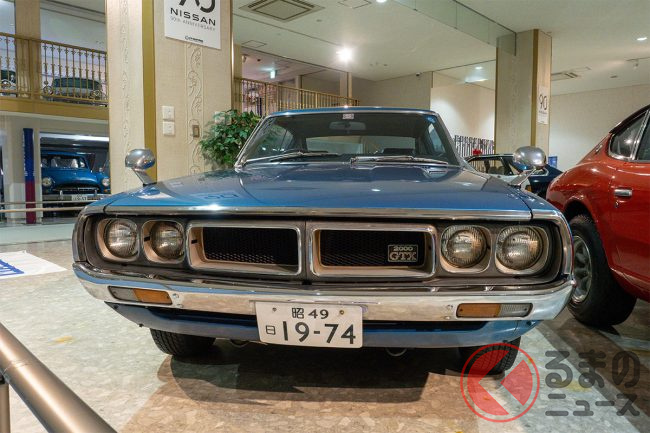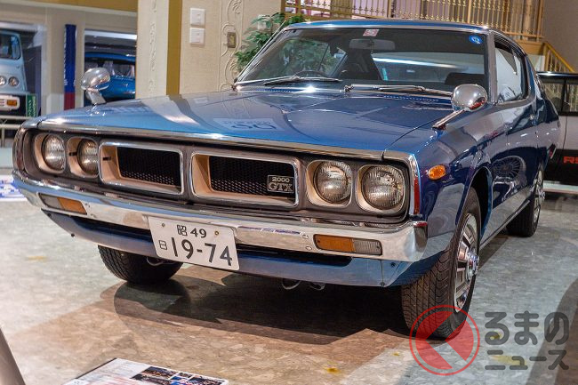 日産の「“青い”スカイライン」がスゴイ! 丸目4灯דサーフィンライン”採用! 伝説の“ケンメリGT”実車公開