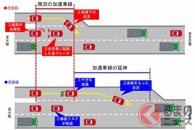 確かに、最初の文字だけ見ると、とっさに「東名」と誤認しそうです。それでなくても、首都圏から来たドライバーなどは「東名…阪? さいごに余計な漢字があるけど、誤植かな?」などと混乱するとも限りません。