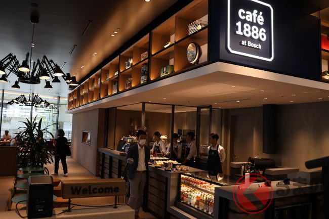 新社屋では、2025年3月オープン予定の「ボッシュホール」と呼ばれる都筑区民文化センターだけでなく、社屋の一部も市民が利用できる取り組みも行われています。地域の新名所となりそうなのが1Fフロアの「cafe 1886 at Bosch」です。東京・渋谷にあった旧本社ビルで「ボッシュカフェ」の愛称で地域の人たちにも愛されてきた名物カフェが移転。バーガーやパスタ、ピザなどの料理に加え、コーヒーメニューも充実し、ドイツビールも楽しめます。