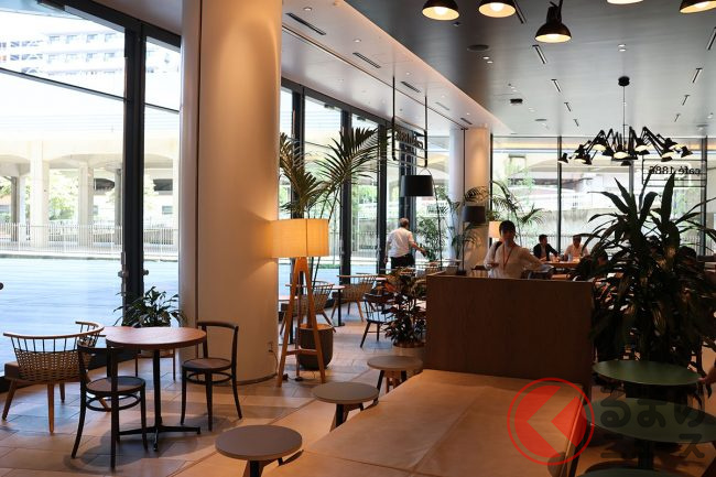 新本社にはカフェや会議室も備えるほか、地域活性化にも貢献
