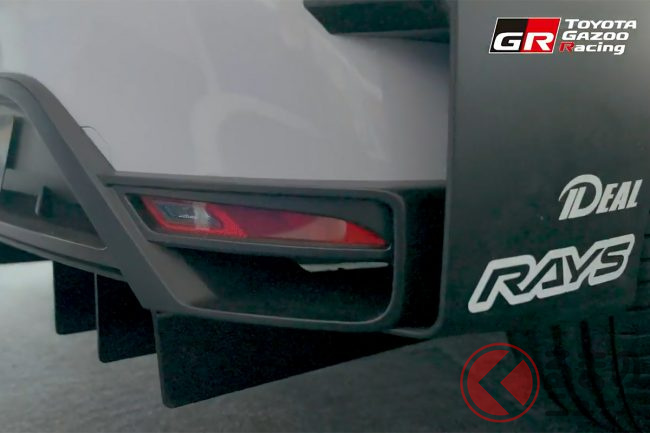 フロントはバンパーコーナー部に大型のカナードスポイラーを装備したほか、ロアグリルの形状は「GRヤリス」や「GRカローラ」などとも共通性を感じさせるGRブランドの四角い形状を採用。ボンネットはカーボン素材を使用することで軽量化を実現するなど、見た目もアグレッシブなスタイルとなっています。
