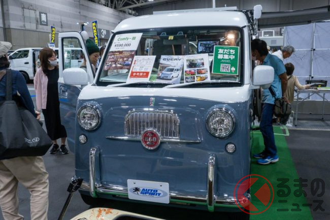 スズキ「“レトロ顔”軽バン!?」公開! ヨーロピアンな「旧車デザイン」が超カッコイイ「FLATムルティ660」! 2人寝られる車中泊仕様なAUTO SPIRITの「エブリイ」とは