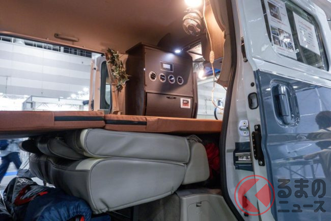 会場ではカップルや壮年の夫婦などを引きつけていたComfy-III FLATムルティ660。スタッフの方に話を聞くと、改造にかかる期間は外観・内観ともに2~3ヶ月程度だそうです。そのため、内外装フルカスタムの場合でも大体半年以内に引き渡せる点もポイントだそうです。