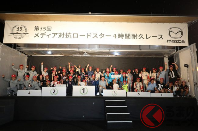メディア4耐は、普段は取材する立場のメディア自身がワンメイクレースの参加を通じて、走りの魅力や楽しさを体感・情報発信することにより、日本の自動車文化成熟へ寄与する目的で、初代ロードスターが登場した1989年に第1回目が開催されました。以降、マツダ787Bがル・マンで優勝をした1991年を除き、リーマンショックやコロナ禍などがありながらも毎年開催され、今回で第35回の記念大会を迎える形となりました。