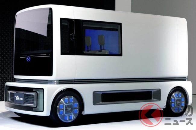 同車は、タイヤが付いた板状のベース部分に、運転席を配した「箱」をドンッと乗せただけという、極めて個性的かつ斬新なフォルムが特徴。