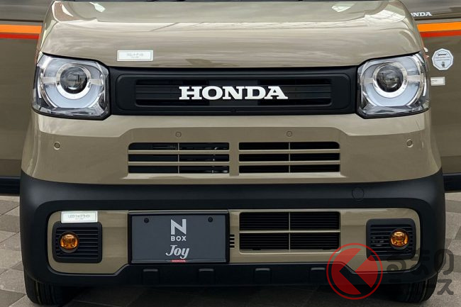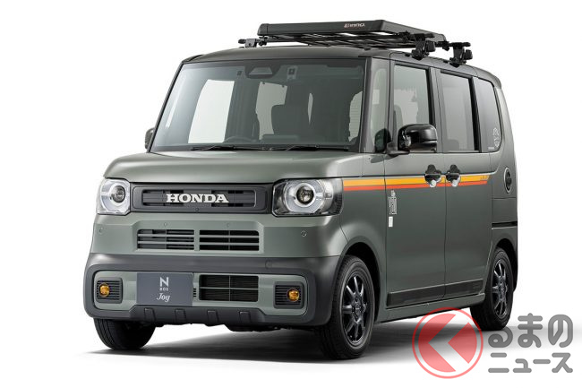 ホンダが新型「軽ワゴン」実車展示! タフな見た目にみんな注目!? HONDAエンブレム装着の「JOY」とは 神戸で披露