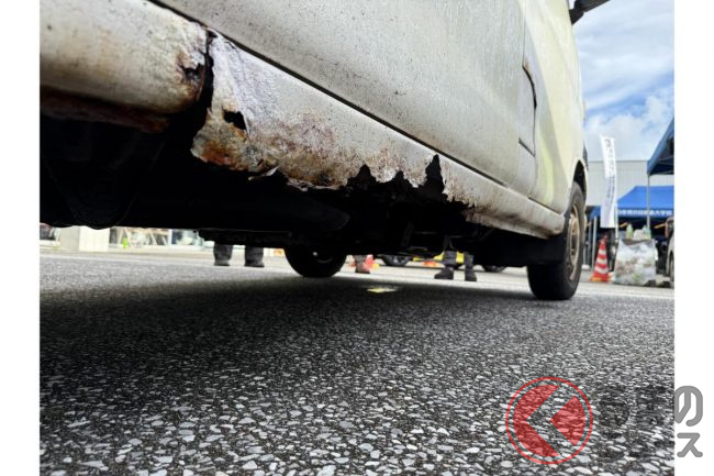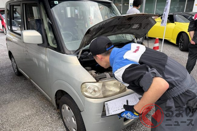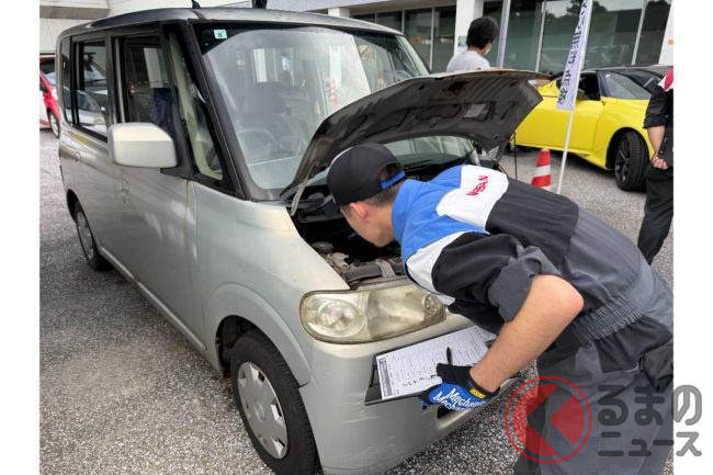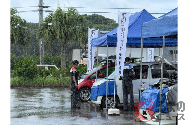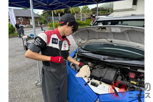 サビ&穴のクルマに衝撃! 雨にも暑さにもマケズ…学生が「無料愛車点検」を実施!? 八丈島で行われた日産校の取り組みとは