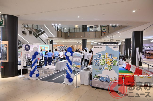 タイヤメーカーとしておなじみのブリヂストンが中心となったイベント「ファミリー交通安全パーク」が2024年9月28日、千葉県柏市にあるショッピングモール「セブンパークアリオ柏」で開催されました。