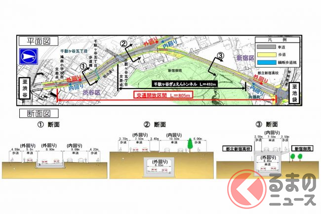 バイパス区間のなかには、千駄ヶ谷エリアなどすでに開通し、従来より所要時間が短縮したルートが存在します。一方で、前述のように現在進行で建設中の場所が「雑司が谷工区」です。