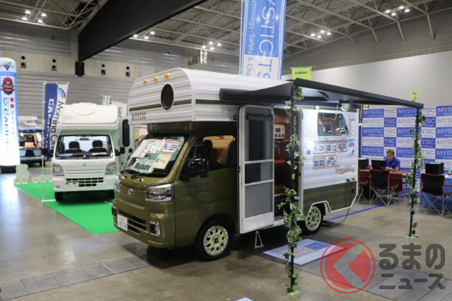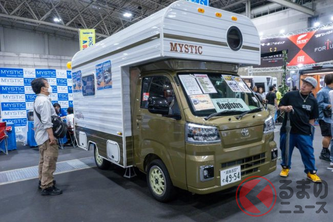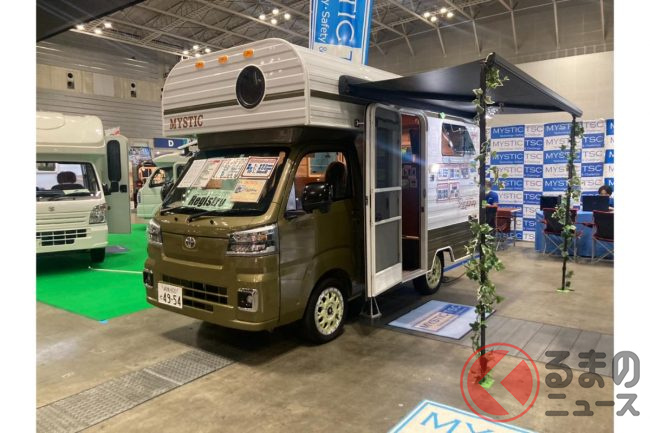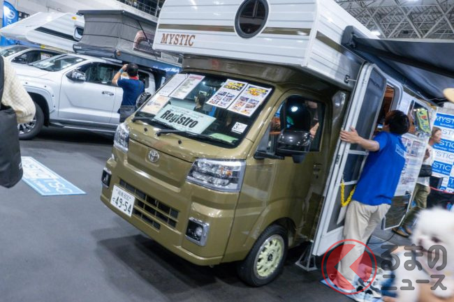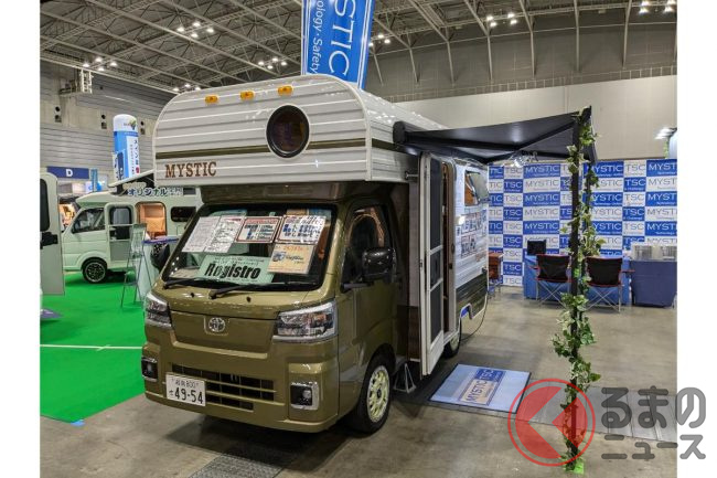 まさかの「“5人乗り”軽トラ!?」公開! 3.8m級ボディの「トヨタ車」!「“横向き”シート」搭載&山小屋風デザインが超カッコイイ「ミスティック レジストロ」名古屋に展示