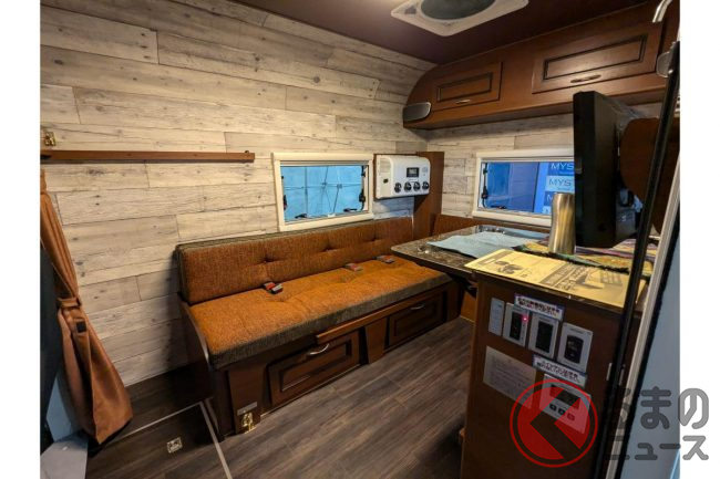 ボディサイズは全長3860mm×全幅1770mm×全高2480mm。乗車定員は5人、就寝定員は4人(子ども2人)。ベースは軽トラックですが、登録区分は小型自動車になっています。