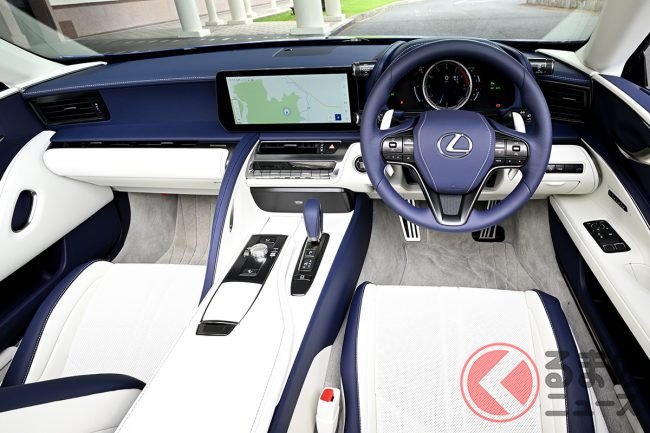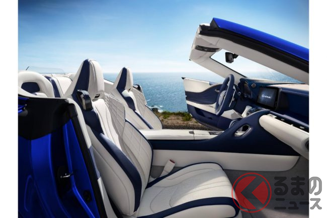 レクサス新型「“V8”オープンカー」発表! オシャ“ブルー”内装&赤ルーフ追加! 470馬力超えの「LC500コンバーチブル」米で登場