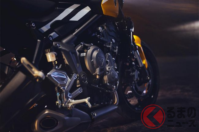 パワーユニットには、低速域での分厚いトルクと中速域での伸びやかさ、トップエンドでの刺激的なフィーリングという相反する特性を実現した、トライアンフの伝統的な3気筒エンジンを搭載。