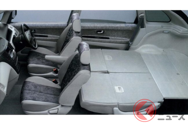 ベースが背の高いミニバンであるため、室内の高さや幅が広く、シートを回転させて前列と後列を対面させたり、フルフラットにすることもできたりと、多彩なシートアレンジが可能な利便性の高いクルマでした。