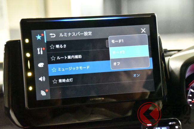 またディスプレイ上部には音楽やルート案内に合わせてイルミネーションが連動する「ルミナスバー」を新たに搭載し、楽しく快適なドライブをサポートします。