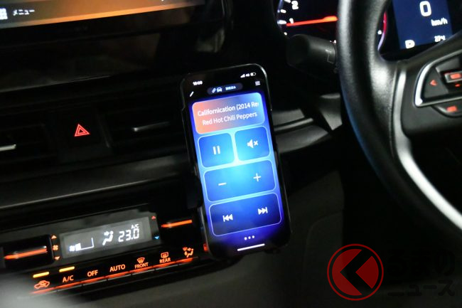 ディスプレイオーディオのDMH-SF900は10.1インチのフローティングタイプの大画面が印象的な1台ですが、ワイヤレス接続での「Apple CarPlay」「Android Auto」に対応したことで、乗車してすぐにスマホと連携して使える点が魅力で、スマホを使いこなす世代との親和性の高いモデルとなっています。