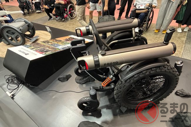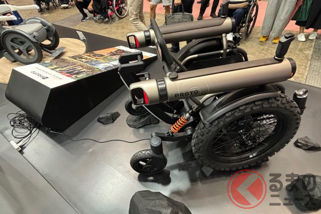 トヨタが斬新「ランクル車椅子!?」公開! オフロードタイヤ装着のすごいヤツ!? 悪路でも「移動の自由を」 市販化も視野に