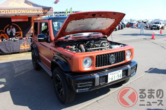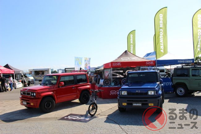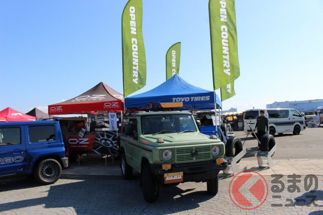そのほかでは、ジムニーパーツメーカーの「APIO」をはじめ、タイヤメーカーの「TOYO TIRE」、DAMDがメインスポンサーを務める、e-モータースポーツとNFTを組み合わせた次世代のモータースポーツプロジェクトの「NEO」、さらには「スズキ自動車」とフードエリアも合わせると30ブース以上が出展。スズキ自動車は同イベントに初出展となりましたが、アフターパーツメーカーのイベントに自動車メーカーが出展するのは異例なことです。