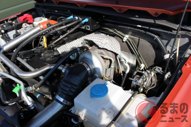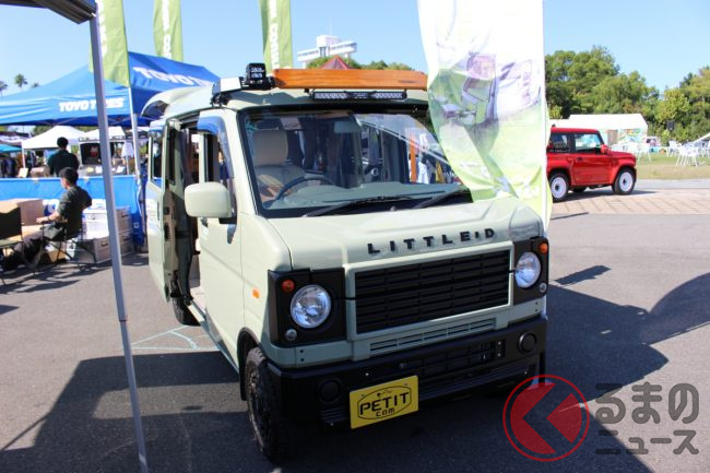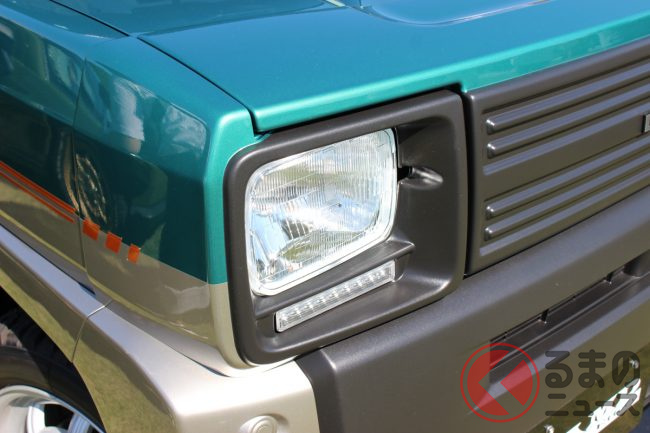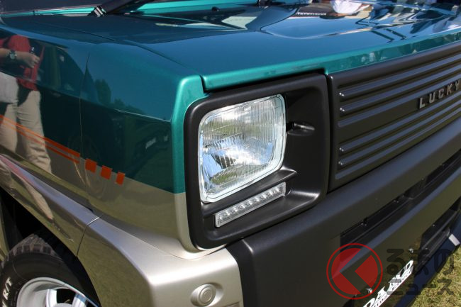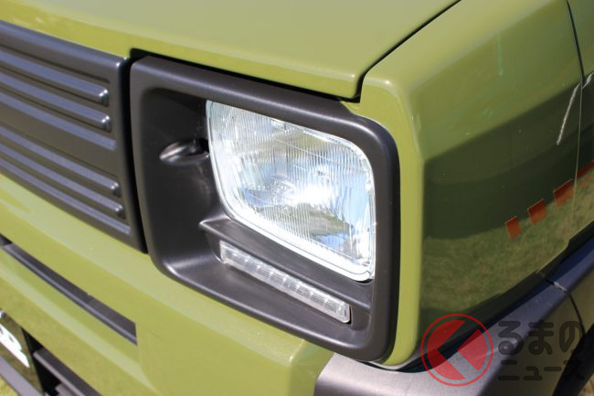 ボディキットの内容は、ヘッドライト、ウインカー、それにともなうヘッドライトカウル、フロントグリル・ボンネットという構成。ヘッドライトはジムニー用のボディキット「little 5.(サンク)」と同様で、Koito社製の角目ヘッドライトを採用しています。