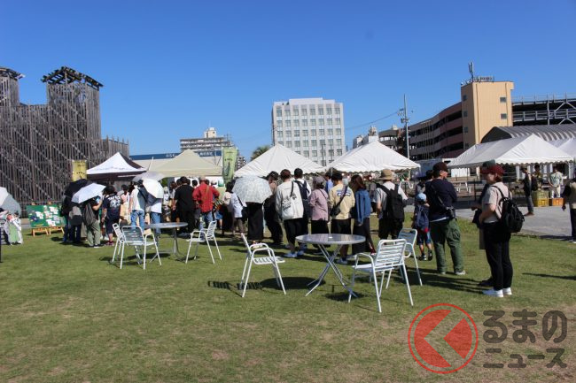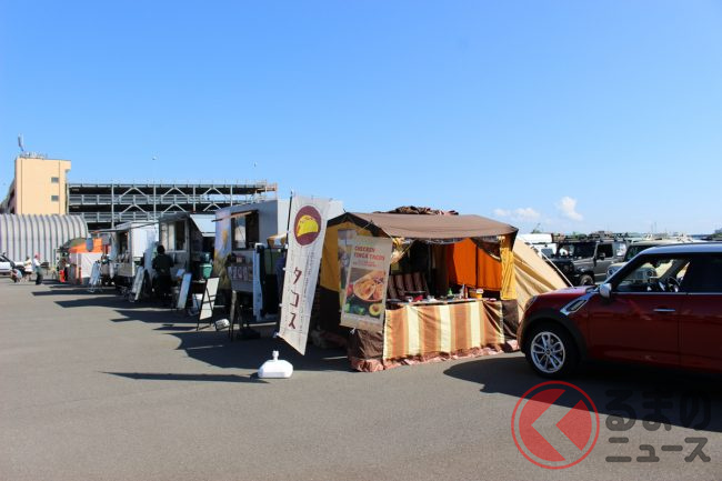 DAMD PARTYは「出会う。繋(つな)がる。広がる。」をテーマにしたダムド公式のファン感謝祭で、今年で4回目の開催となります。会場にはパーツメーカーやアウトドアメーカー、ホビー・カルチャーの出展と併せてフードエリアも設けられ、多くの来場者でにぎわいを見せていました。
