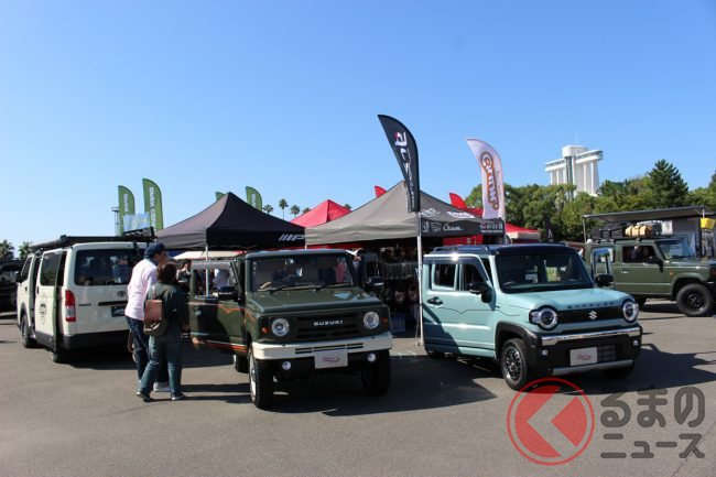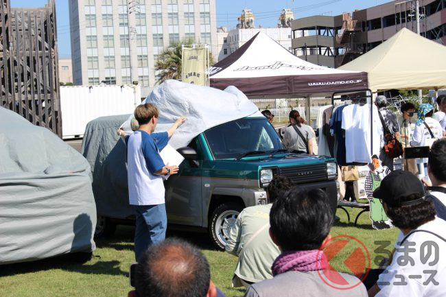 ユーザーカー展示エリアでは、DAMDのパーツを装着しデモカー顔負けのカスタムを施したジムニーや、ハスラーといった150台ほどのユーザーカーで埋め尽くされましたが、展示枠に対して約2倍の申し込みがあったとのことです。クルマを展示したイベントの参加者がカスタムポイントについて話し合うなど、ユーザー同士のコミュニティーができていたのも印象的でした。