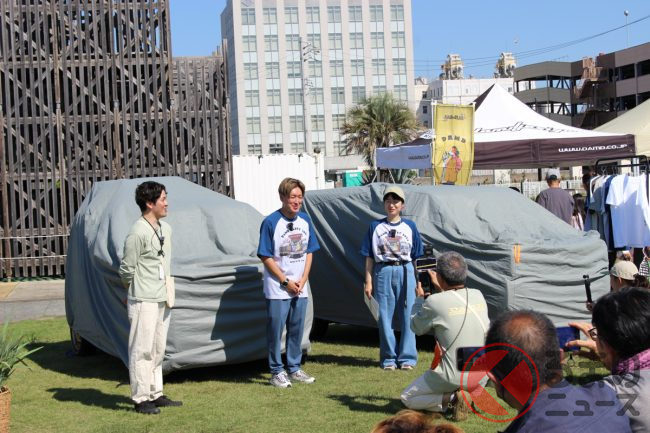 会場の特設ステージではさまざまなコンテンツが用意されており、MCはくるまのニュース公式YouTube「くるまのCHANNEL」でもおなじみのお笑い芸人シューマッハ五味さんと、DAMD JIMNY SIERRA little D.のオーナーでもある釣り系YouTuberちぬ子さんが担当。シューマッハ五味さんは一昨年に続いて本イベント2回目のMCとなりましたが、冒頭のあいさつでDAMD PARTYについて「毎年どんどん規模が大きくなっていて感慨深い」と話しました。