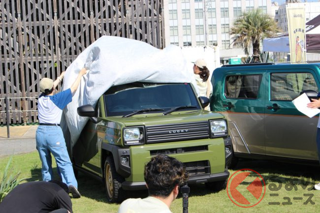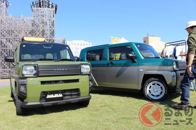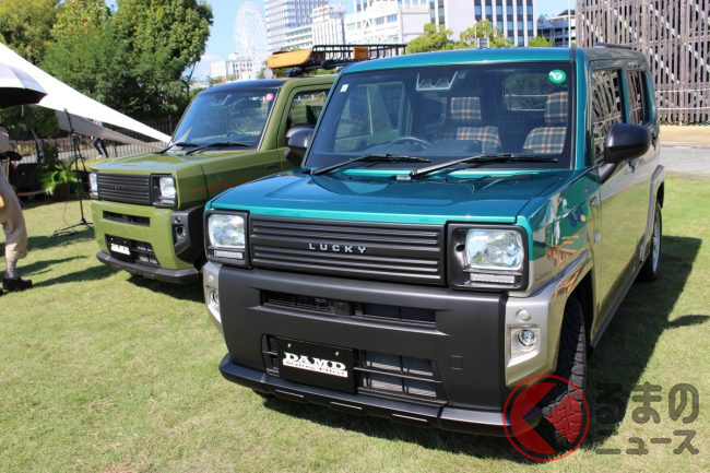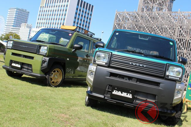 現行ダイハツ「タフト」を初代「ロッキー」のレトロフェースにチェンジ!?「DAMD PARTY 2024」で初公開された2台の謎のクルマとは