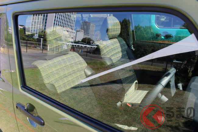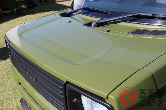 続けてモチーフやデモカーのカラーについて「『TAFT LUCKY』のモチーフにしたのはダイハツ初代の『ロッキー』です。当時の車両は黄色みがかったガンメタの2トーンカラーが採用されることが多かったので、デモカーも当時を意識したオリジナル色でオールペントしています。もう1台は純正色での装着イメージがわくように、純正色の『フォレストカーキメタリック』で仕上げています」とデモカー製作の背景を話しました。