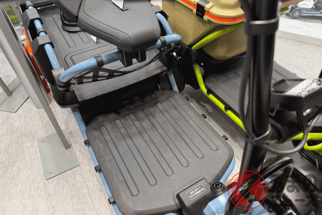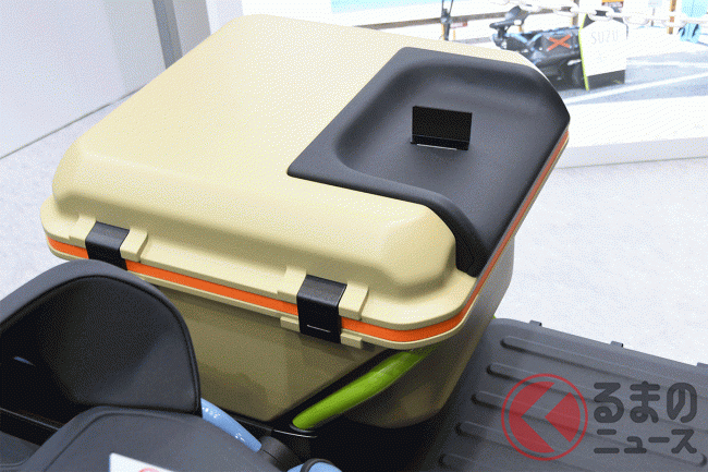 オープンな荷台ではなく、スズライドにはクーラーボックスのような収納が備わり、約110リットルの容量を確保。その上に座って運転します。