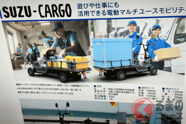 全長1.9m! “1人乗りミニ軽トラ”スタイルの「SUZU-CARGO」発売へ!? スズキが斬新すぎる「小さいのりもの」実車公開!