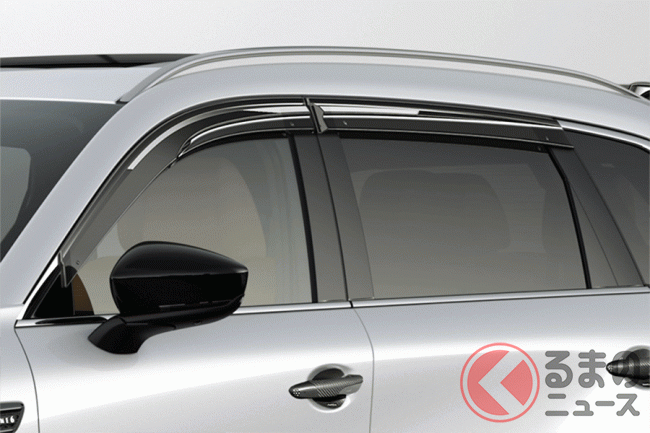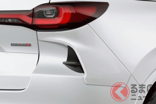 さらにリアでは、バンパーに装着する「リアアンダーガーニッシュ」や、プレミアムグレードのフロントバンパー左右に設けられるダクトをモチーフにした「リアサイドカウル」、「リアルーフスポイラー」、「スポーツサイドバイザー」の組み合わせにより、新型CX-80のリアビューを重厚かつ精悍なスタイルに仕立てることが可能です。