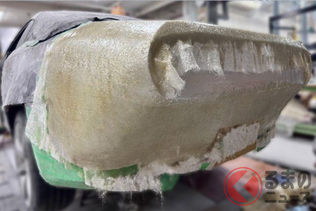 前出の担当者は「ケンメリらしさを出すために他も造形をしています。主な工程は、発泡ウレタンを使用し造形、FRPで型を取り、元のボディやパネルに貼るという工程です」と語ります。