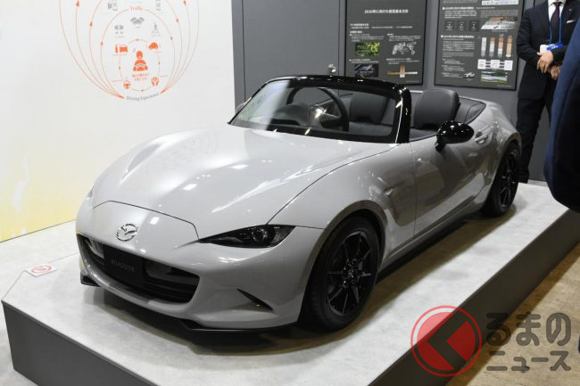 マツダは2024年10月15日から4日間開催される「JAPAN MOBILITY SHOW BIZWEEK 2024(ジャパンモビリティショービズウィーク2024)」に、ミニサイズの「ロードスター」を実車展示しました。