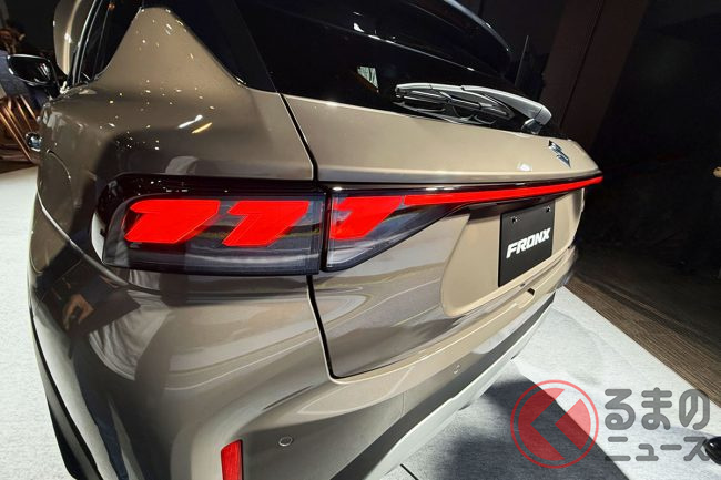 スズキ新型「小さな高級車」に大反響! “全長4m”の流麗ボディ&斬新「777テールライト」採用! “専用仕立て”の新型SUV「フロンクス」発表!