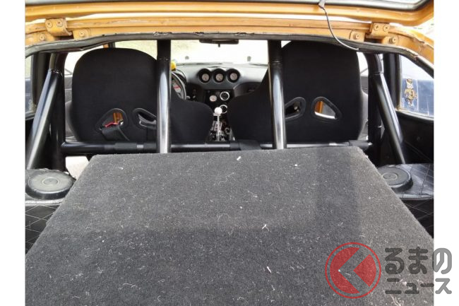 外観はドラッグレース仕様となっている一方、内装はオリジナルに近い状態です。変更点として、メーター・シートがレース用に変更されており、ダッシュボード上のシフトライトが追加されています。エアコンなど快適装備は、軽量化のため撤去されています。