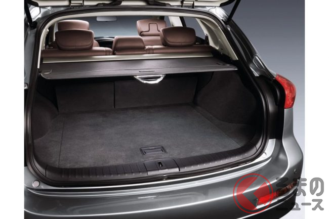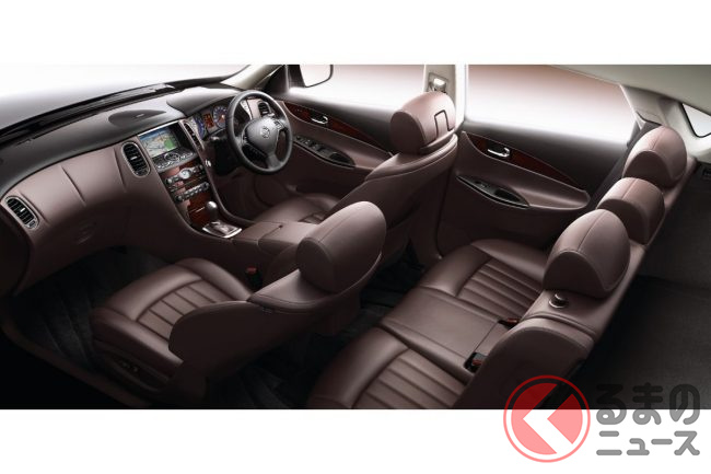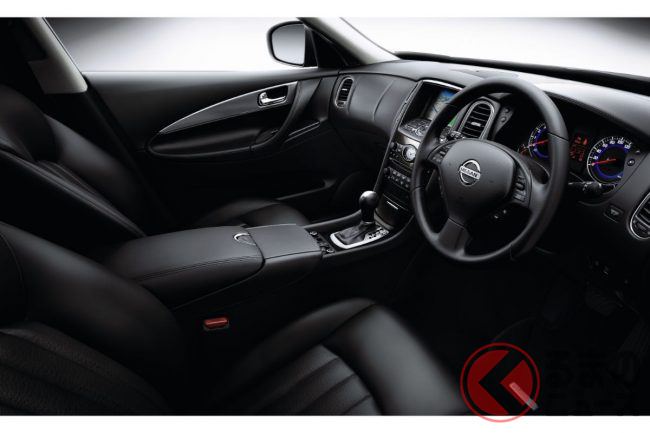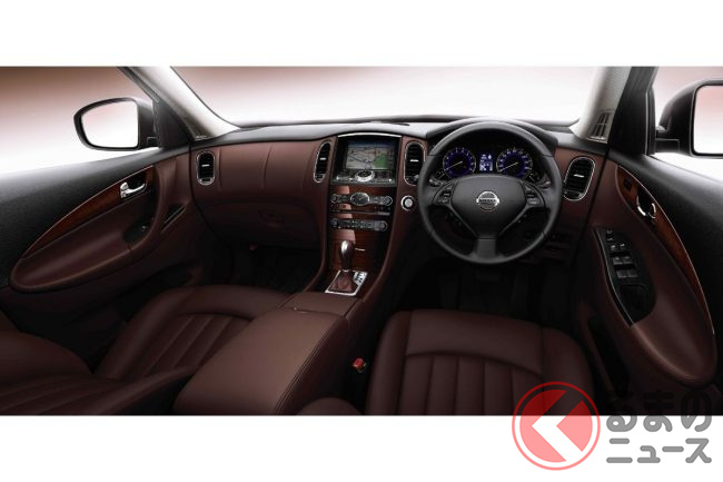 日産「スカイライン“SUV”」がスゴイ! 大排気量「V6エンジン」&“FR”採用の流麗ボディ! “レザー×ウッド”の豪華内装もステキな「クロスオーバー」とは?