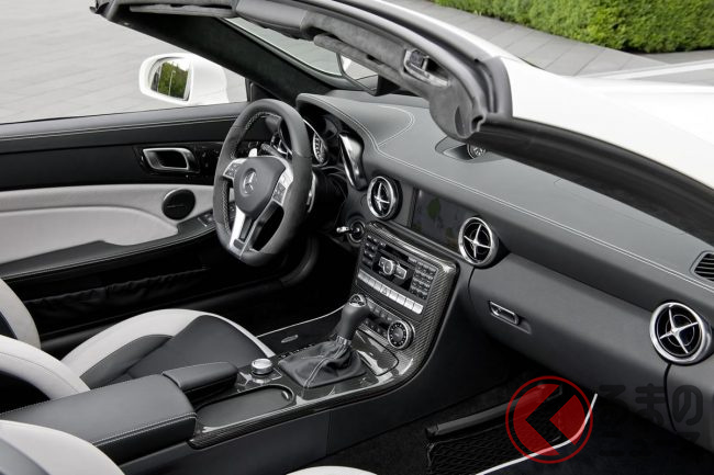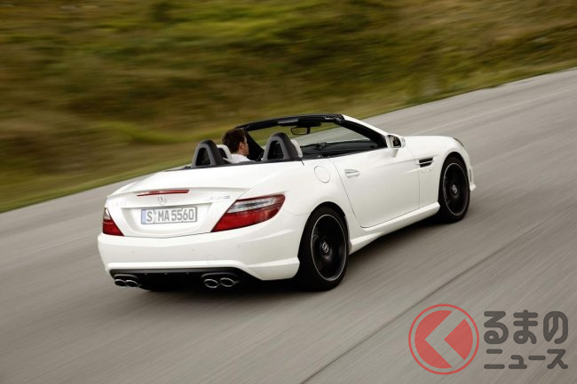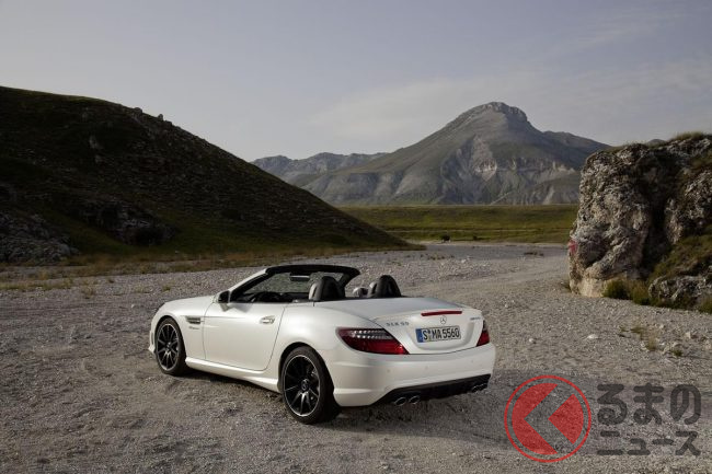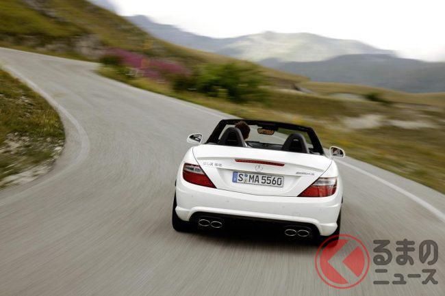 全長“4.2m”未満! 爆速「コンパクトカー」がスゴイ! 5リッター超え「V8NA」搭載&オープン仕様! “FR”でめちゃ楽しそうな「SLK55」とは?