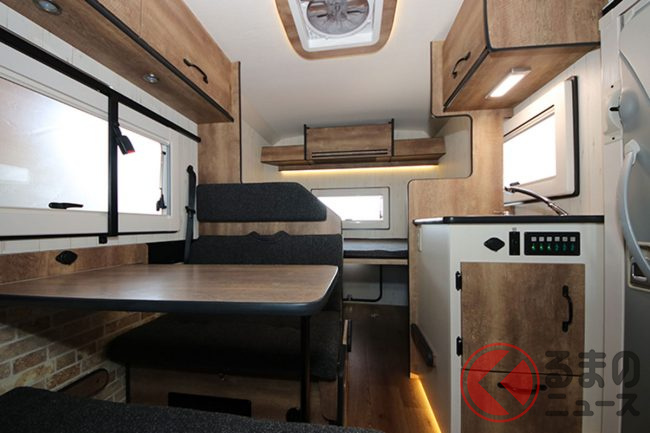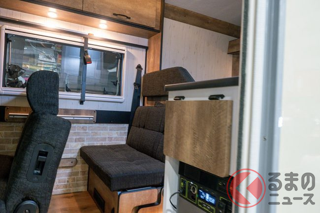 主要装備としては、トヨタ純正のリアクーラー・リアヒーター、12リットルの排水・給水タンク、カセットコンロや冷蔵庫、リチウムイオンのサブバッテリーなどを備えています。