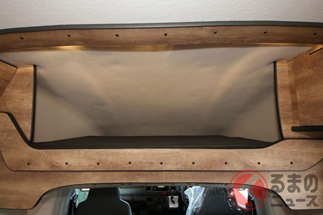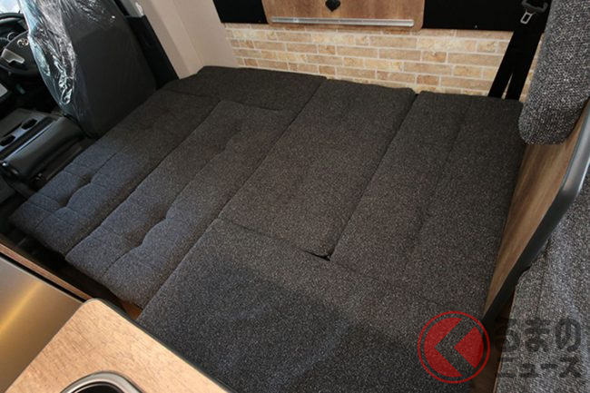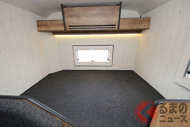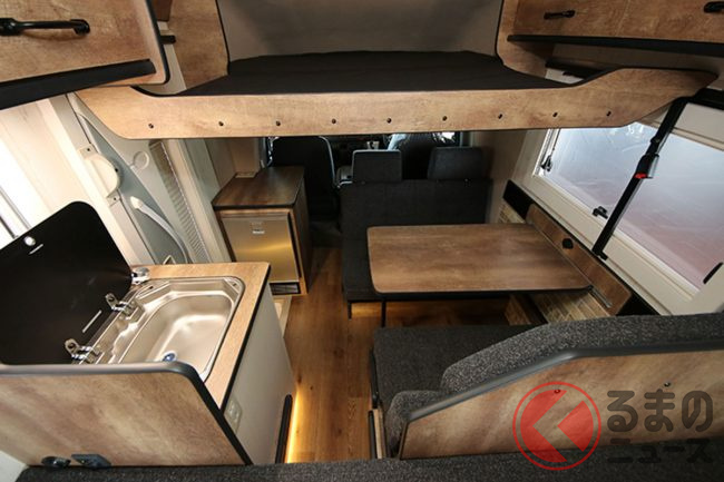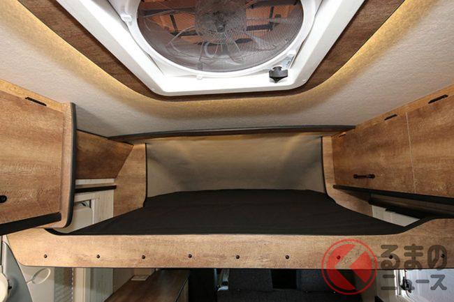 就寝スペースは、車体後部にダブルサイズのベッドを常設するほか、運転席上に引き出し式のバックベッド、さらに後席をフラットにアレンジすることで生まれるベッドの3つがあります。