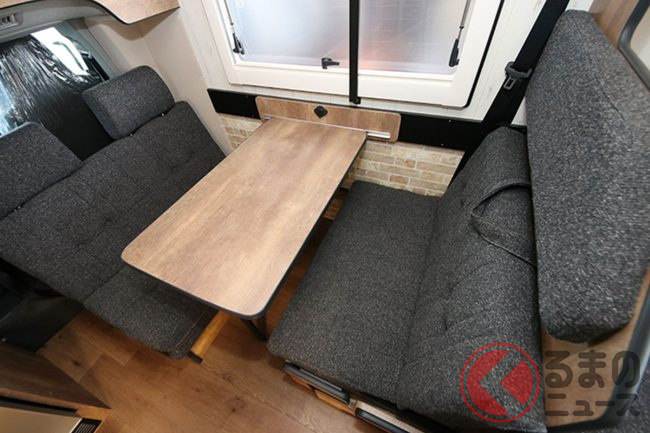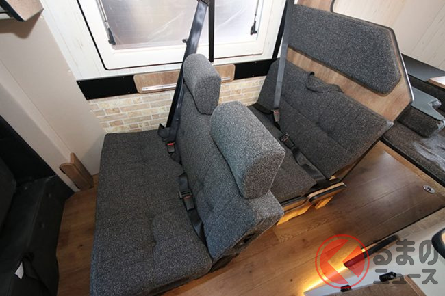 走行時は前方に向けて使用し、宿泊先などで2列目を後ろ向きに転換することで、リビング空間となる仕掛けです。