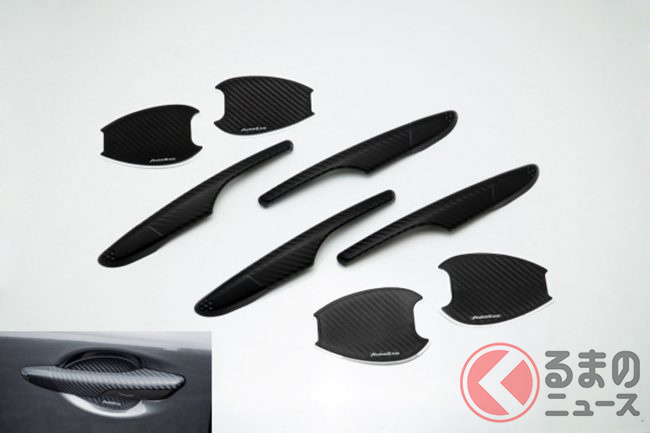 まず「フロントグリル」は、純正のタテグリルとは全く異なる水平基調のフィンタイプを採用。ピアノブラックとつや消しブラック塗装との組み合わせにより、スポーティでワイド感が高まったフロントフェイスに仕上げることができるアイテムです。