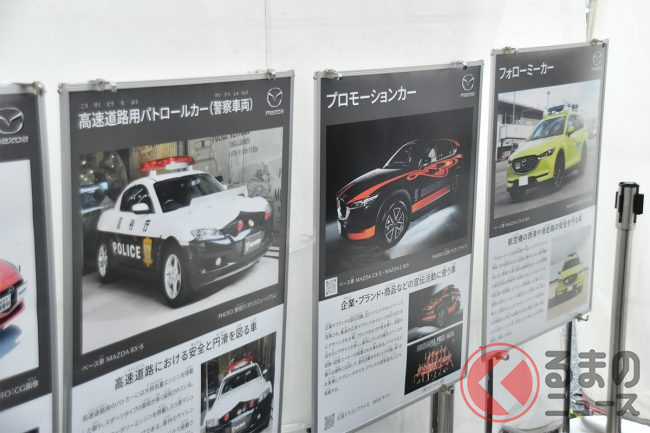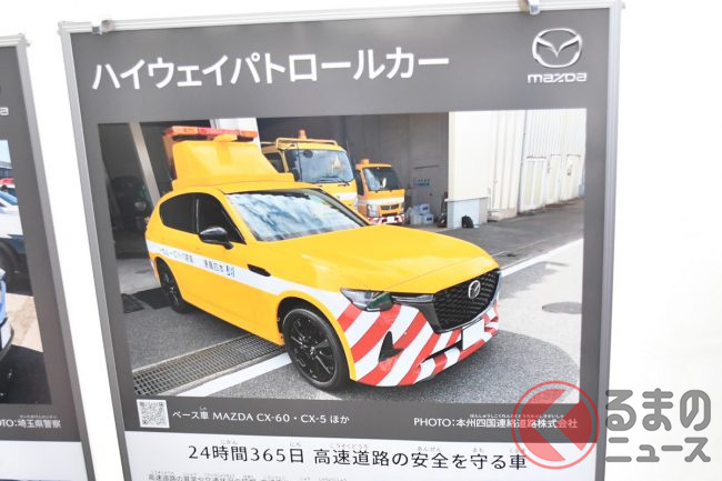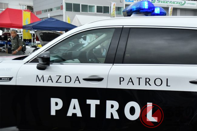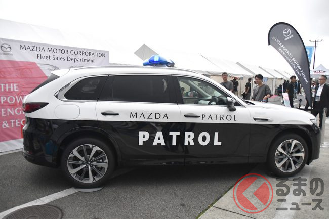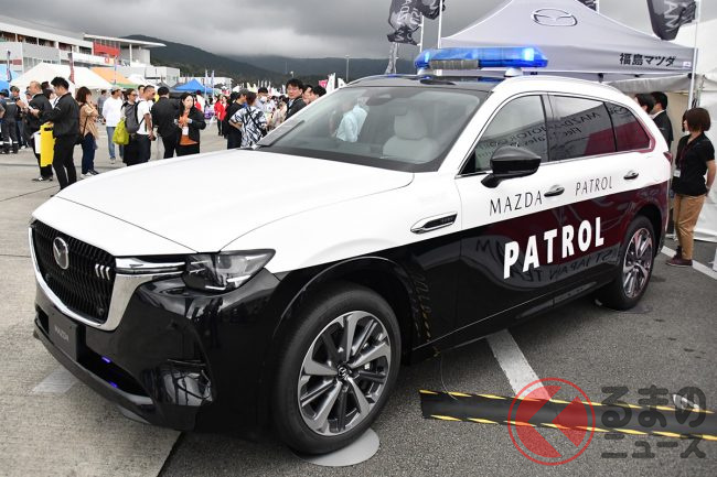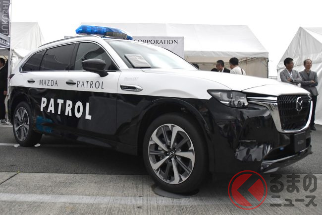 プレミアムSUVをパトロールカーにするというのはあまりイメージが沸かないかもしれませんが、すでにCX-80と同じラージ商品群のCX-60をベースとした道路パトロールカーが実戦配備されており、CX-80のパトロールカーも実は現実的なものと言えるとのこと。