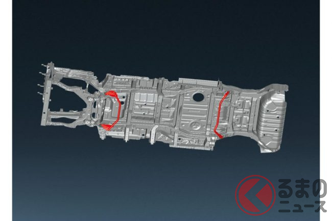 また、セレナe-4ORCEでは、モーターの配置など工夫したレイアウトとすることで、従来の2WDモデル同等の室内空間を確保するとともに、最低地上高を通常の135mmから150mmへとアップさせています。