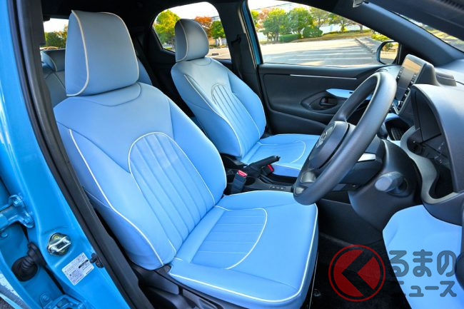 インテリアは基本的な形状はヤリスのものを踏襲しており、標準ではブラックのファブリックシートとなりますが、オプションとしてレザーシートの設定があり、8色のカラーから選択が可能。