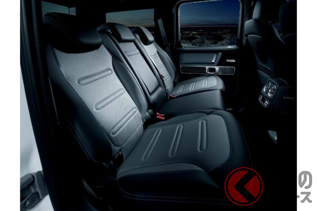 さらに、Gクラスのアイコンの1つとなっているスペアホイールカバーの代わりに、ベルクロストラップとラゲッジネットを備え、充電ケーブルやスノーチェーンなどを収納できるデザインボックスが装備されるのも特徴です。