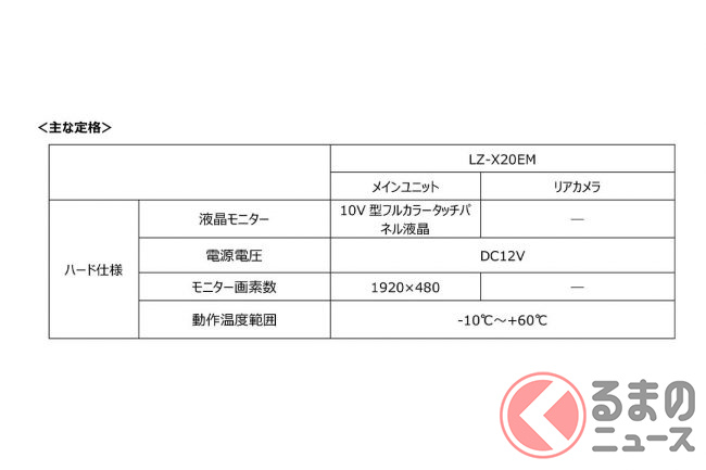 デジタルルームミラー「LZ-X20EM」の市場推定価格は3万3000円(消費税込み)前後で、2024年11月下旬に発売予定です。