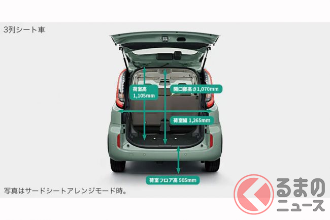 現行モデルは、2022年に登場した3代目。ボディサイズは全長4260mm×全幅1695mm×全高1695mm。全高は20mmアップし、床面が引き下げられたことで2列目・3列目の室内空間が拡大。スライドドアの開口幅も広がり、乗降性も向上しています。