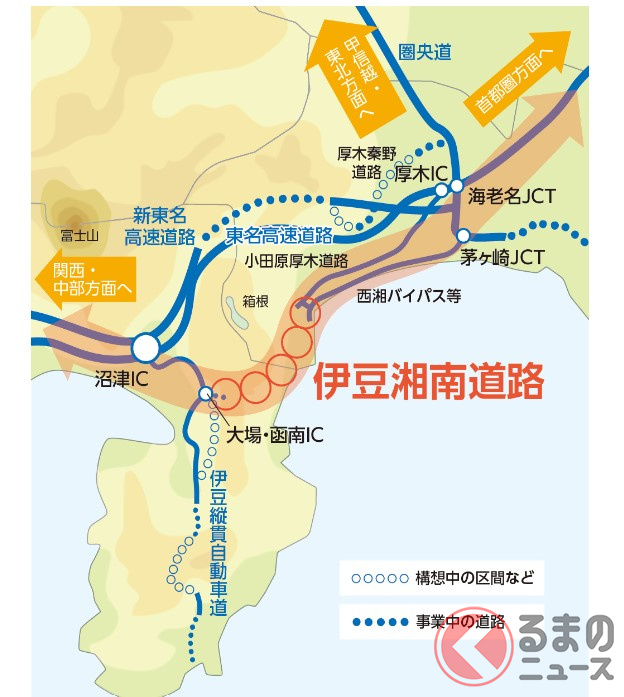 小田原~熱海~沼津に高速整備へ!? 「伊豆湘南道路」計画に反響多数「楽しみ」「熱海遠いよね」ついに概略ルート決定間近 「大渋滞区間」にようやく変化?