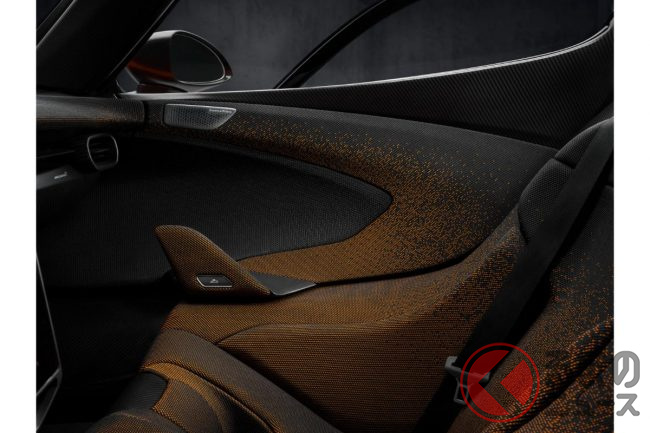 例えば上下開閉式の「アンヘドラルドア」(ガルウイングドア)を採用したボディは、その見た目だけでもインパクトは十分ながら、「Aerocell(エアロセル)」と名付けられたカーボンファイバー製モノコックで、シートと一体化したユニークな構造となっています。